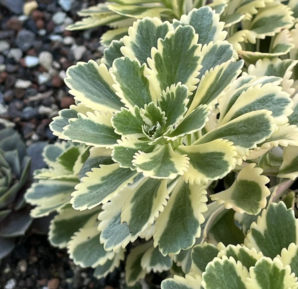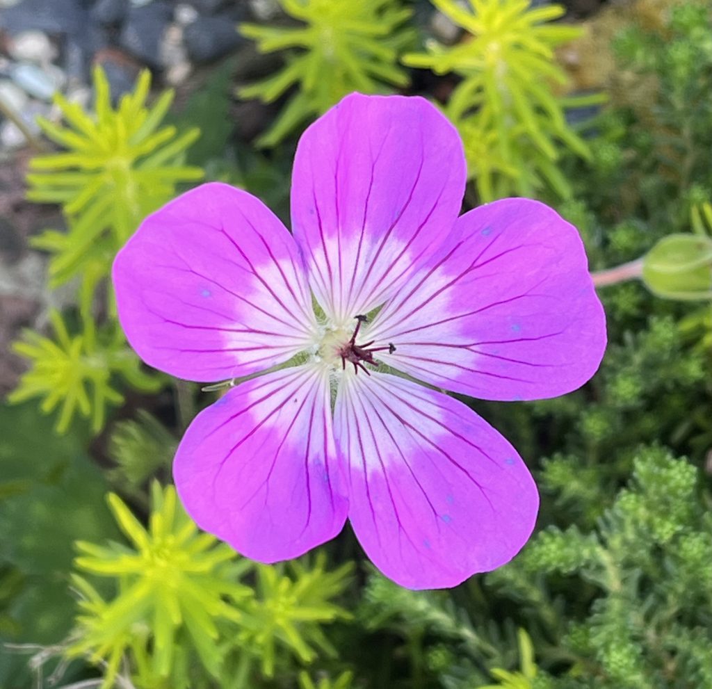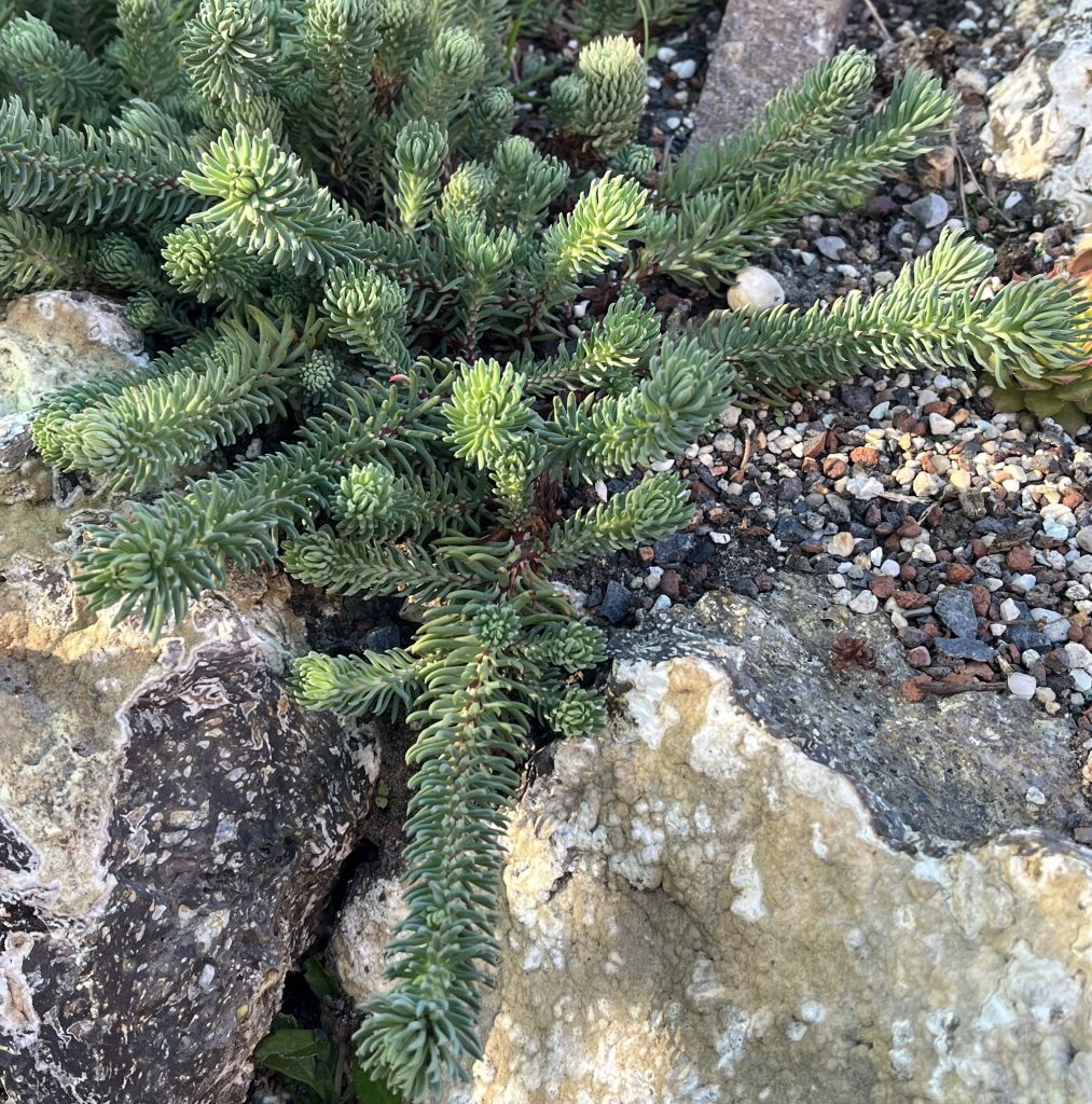 Gepflanzt habe ich sie heute am 22.4.2023 in die untere Ebene im Grabenbeet zwischen die Porzellanblümchen, damit ein bisschen Farbe ins Beet kommt!