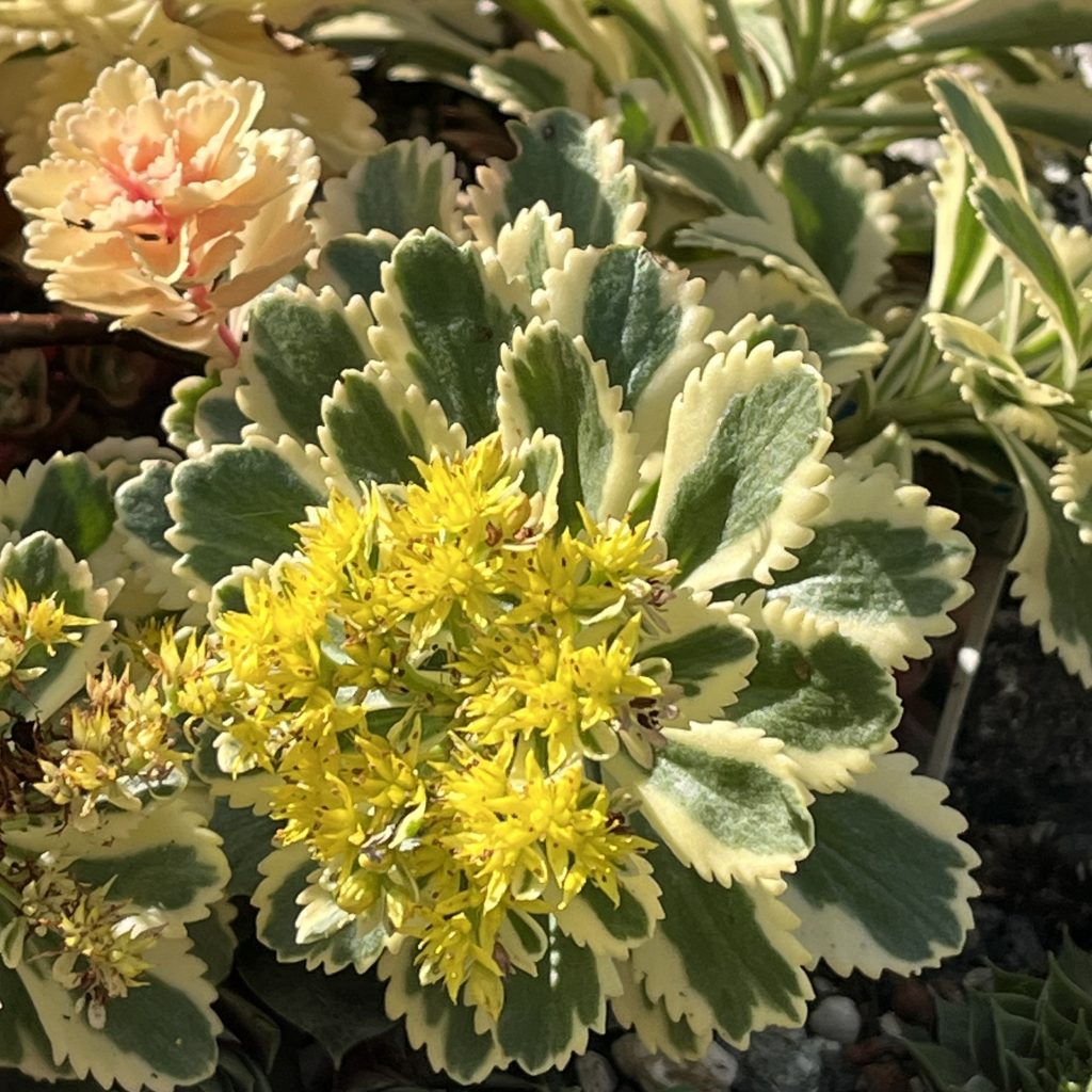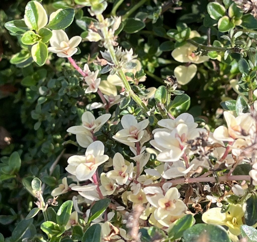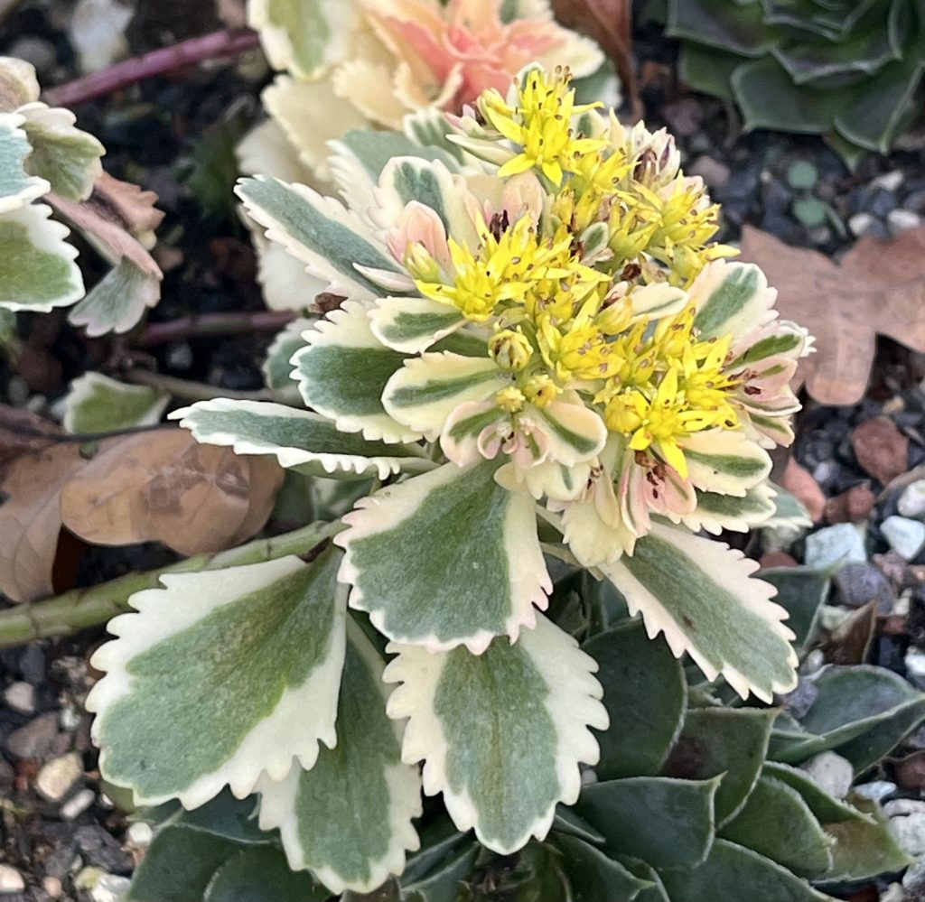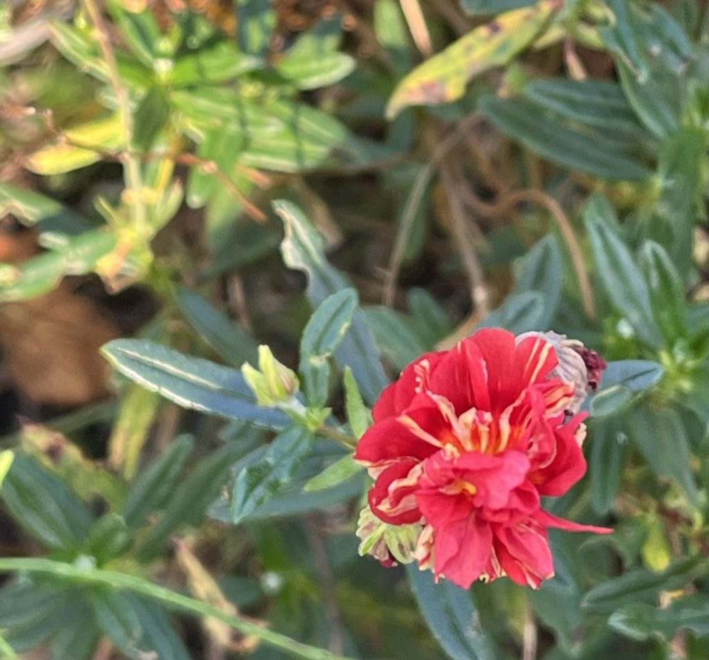 Gepflanzt habe ich sie heute am 22.4.2023 in die untere Ebene im Grabenbeet zwischen die Porzellanblümchen, damit ein bisschen Farbe ins Beet kommt!